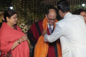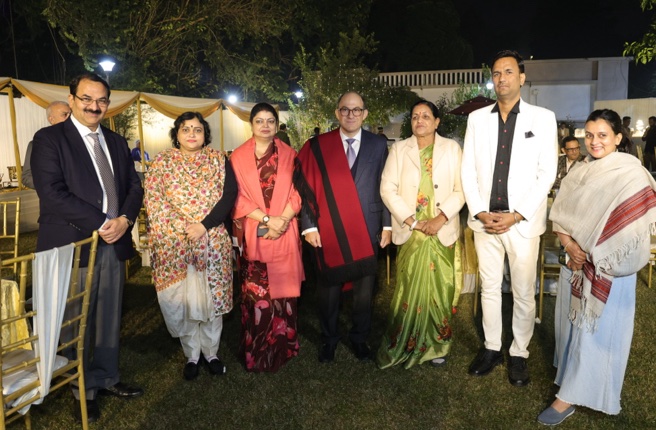 H.E. Ambassador Mariano A. Caucino greeted Maya Naroliya, Member of Rajya Sabha and Darshana Singh, Member of Rajya Sabha, during the Rajasthani Dinner on 17th December 2025.
